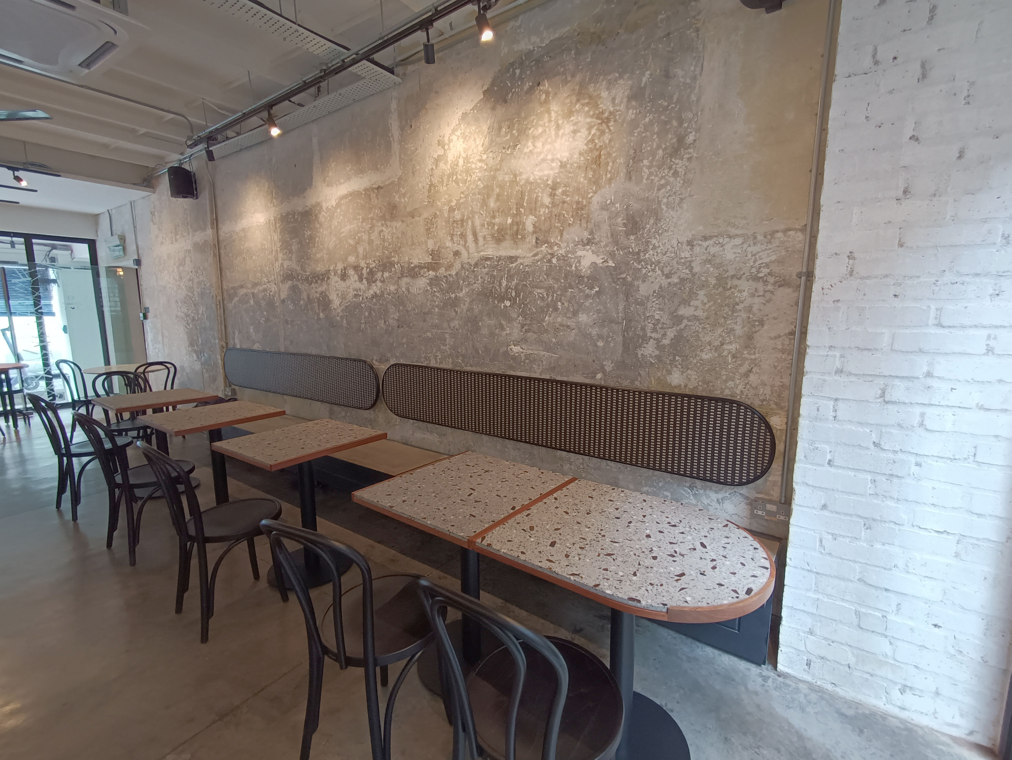 Table designs for LOKL cafe, KL. Exploring materials with recycled glass from the cafe’s used bottles.